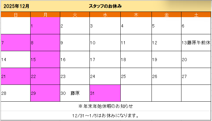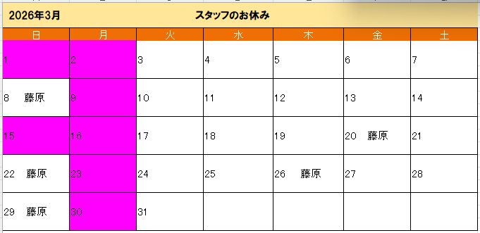 STAFF<スタッフのお休み>